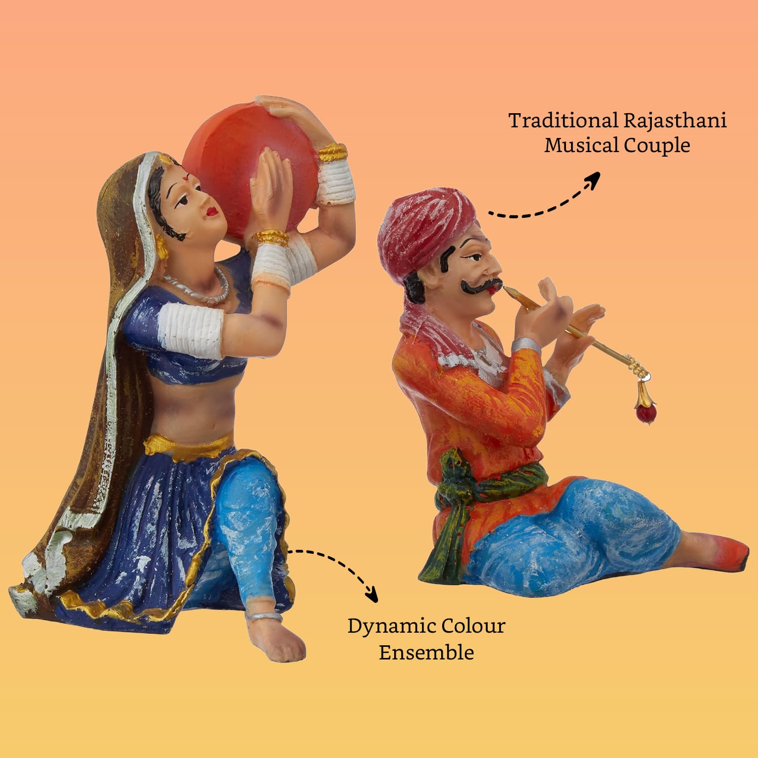 - Cultural Treasures: This pack comprises two decorative showpieces portraying a traditional Rajasthani musical couple, capturing the essence of Rajasthan’s rich cultural heritage with their intricate design and historical significance.